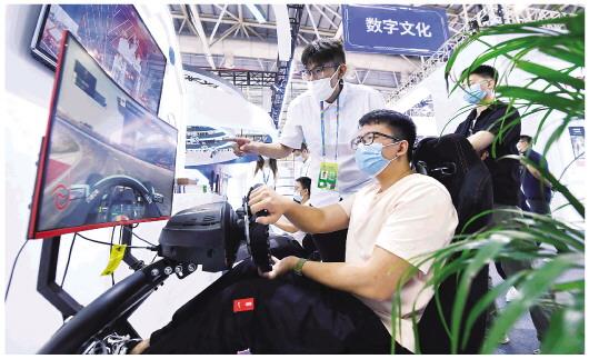 7月22日,观众在第五届数字中国建设成果展览会上体验模拟赛车。当日,第五届数字中国建设成果展览会在福州举行。本次展览多角度交流我国数字化改革经验,全方位促进国际国内数字经济发展合作,高规格发布数字化创新产品和解决方案,立体化展现了数字中国建设成果。 新华社记者林善传摄